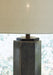 Why settle for standard light fixtures when this table lamp adds so much warmth and style? This hexagon-shaped lamp features an antiqued pewter-tone and black finish topped with a drum shade. Whether lighting a living area, bedroom or entryway, this piece will steal the spotlight wherever it lands.