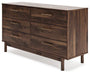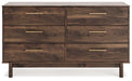 At the intersection of industrial cool and chic sophistication, you’ll find this dresser. With a rich brown finish over replicated walnut wood grain, paired with burnished goldtone handles, it offers an authentic touch that plays well any way you style it. Simple and elegant in its design, this piece keeps your home decor grounded while elevating your modern style.