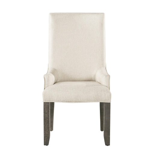 The Finn Upholstered Arm Chair Set is dressed in a lovely cream linen upholstery with distressed dark walnut finished legs to match the finish of t...
