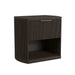 The Sylvie 1-Drawer Nightstand in Dark Brown is a refined addition to your bedroom. Outfitted with fine decorative fluting, an understated silver drawer pull, and a convenient touch light, the elegance of this piece is only matched by its quality construction. The drawer features skillful French dovetailing, a smoothly operating ball bearing glide, and is thoughtfully fitted with felt lining. For a piece that is as durable as it is elegant, the Sylvie 1-Drawer Nightstand in Dark Brown is sure to please. Features: • Made with Durable Engineered Wood • Equipped with Convenient Touch Light • Drawer with Smooth Ball Bearing Glides & Skillful Dovetailing • Felt Lining Protects Drawer & Contents • Vertical Fluting Creates Texture • Rounded Edges Convey Modern Style • 28"W x 20"D x 26"H • Due to Lighting, Product Color May Slightly Vary from Images Dimensions: Depth: 20.0" x Width: 28.0" x Height: 26.0" Weight: 67.0 lbs.