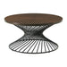 The Terri Coffee Table infuses a playful yet sleek attitude into your space, and add a pop of rustic farmhouse to your living room with this distinctive coffee table. This eye-catching table design showcases a twisted metal base in a black finish with a contrasting rounded wood top. The combination of these materials play into the industrial farmhouse look that this table was inspired by. Dimensions: Depth: 36.0" x Width: 36.0" x Height: 18.0" Weight: 43.0 lbs.