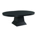 The Maddox Dining Table will be the center of attention for your dining room. This amazing table can accommodate a small or large dinner party with two 12" removable leaves. What a transformation for just one table! The dark oak finish flows throughout the entire piece, giving it a contemporary look. The square pedestal table base provides amazing stability for the oval table top. The Maddox Dining Collection also offers upholstered side chairs, corner, loveseat and dining sofa for multiple seating options. Features: • Includes: Two 12" Leaves • Standard Dining Height • Wire Brush, Dark Oak Finish • Oval Table Top • Square Pedestal Table Base • Metal Ball Bearing Slide for Leaves Dimensions: Depth: 60.0" x Width: 60.0" x Height: 30.0" Weight: 201.0 lbs.